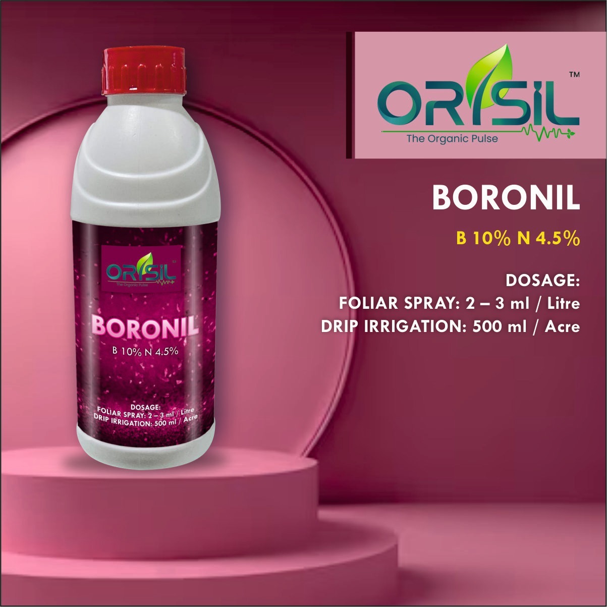 Liquid boron 10% is a solution of fully water soluble fertilizer containing nitrogen and boron. Boron deficiency in crop plants is the second most widespread micronutrient deficiency problem after zinc. It helps in cell wall formation. It helps in flower/pollen formation. It is also required for effective nitrogen (N), phosphorus (P) and potassium (K)fixation. It is essential for flowering and fruit setting. It is essential for increasing crop yield. It helps in calcium absorption. It enhances fruit quality and size. It helps control the transport of sugars in plants.
