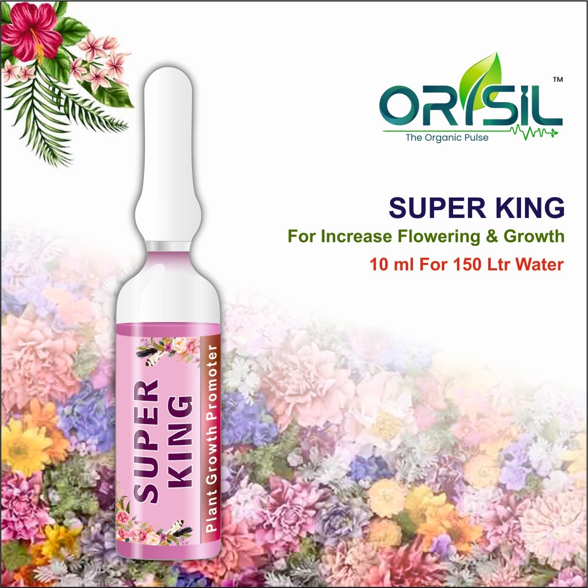 super king stimulates plant hormonal system in cell structure and molecule level. This generate specific site in cell to stimulate cell growth and multiplication.Macro molecule of power generate new branehing and new flower and but development overall growth and flowering increase crop yield to about 10-12%
